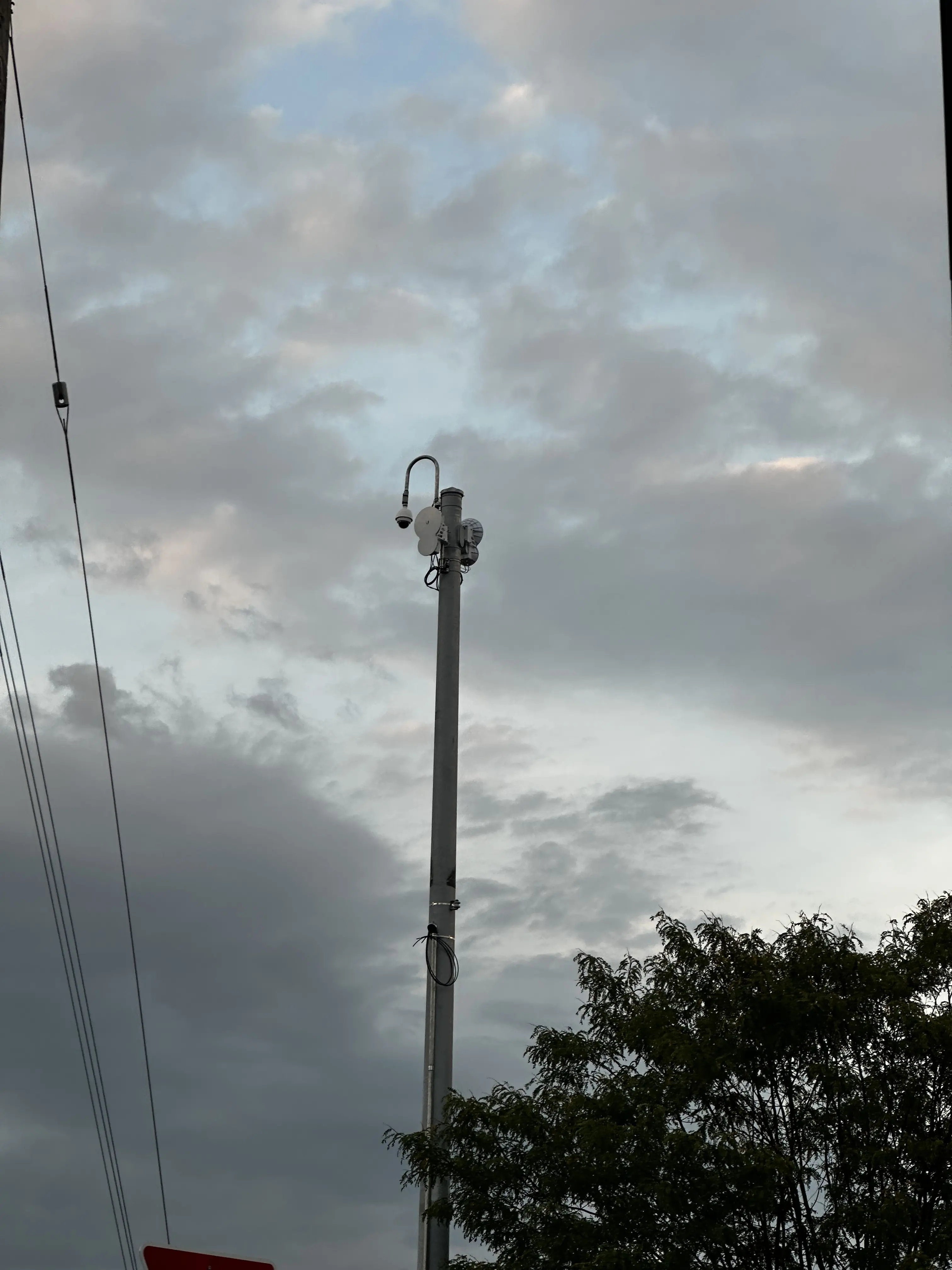They started installing poles along a main road near where we live and I’m not sure what the white antennas on them are for. Some of the poles have traffic cameras like the one in the picture but others don’t. They are spaced every half to one mile and have antennas on opposite sides, with what looks like a radio cabinet near the base. The antennas are all aligned along the road, pointing parallel to traffic. This is in southwest Pennsylvania.