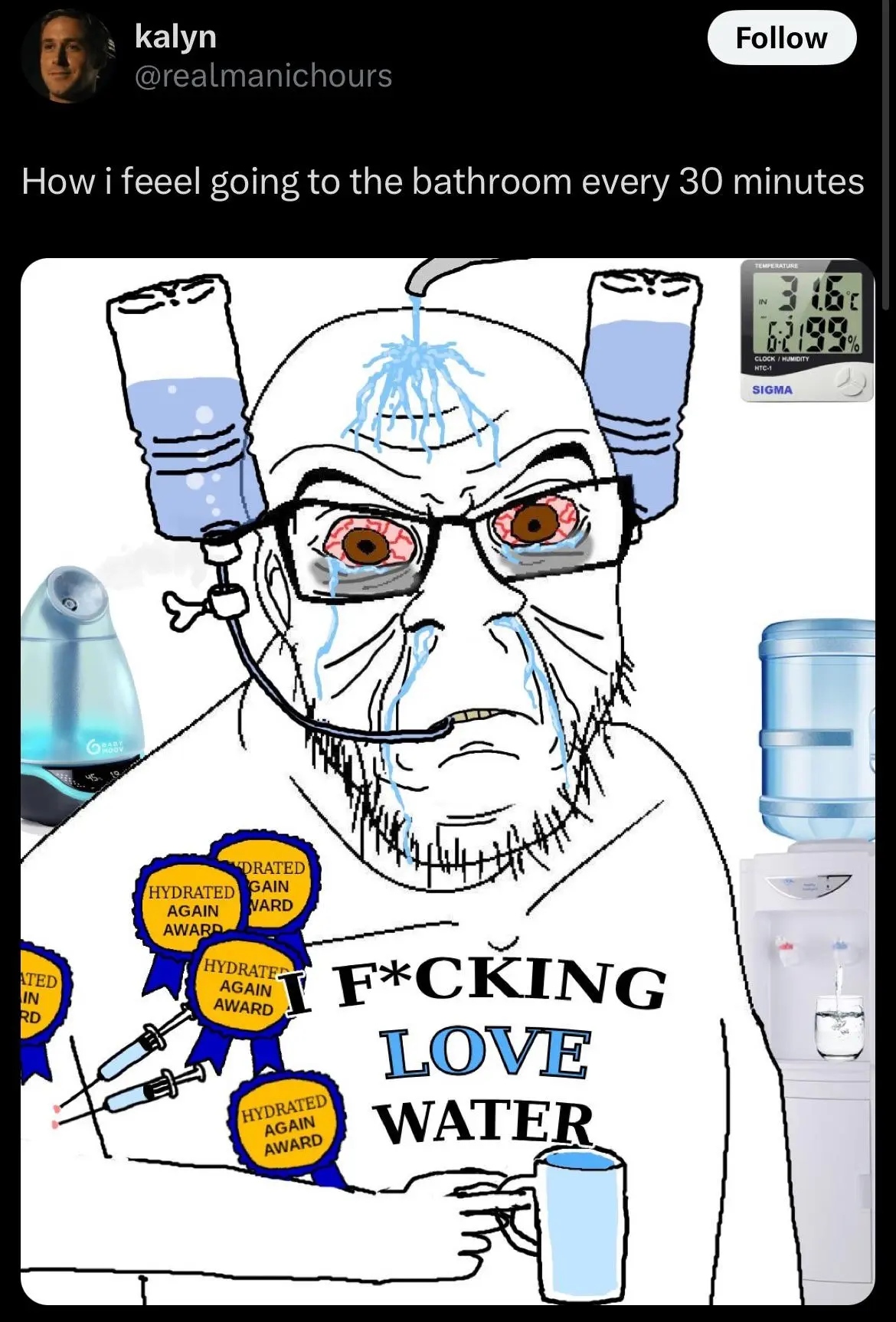 LifeLemons@lemmy.ml to Lemmy Shitpost@lemmy.worldEnglish · 1 year agoWater addictionlemmy.mlimagemessage-square34linkfedilinkarrow-up1440arrow-down112