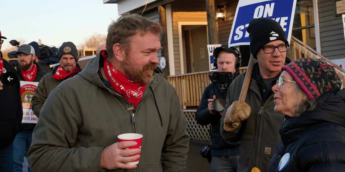 “We had to shed her from our politics. Quite frankly, we have to shed all the people like her,” Platner continues as a musician plays the labor movement anthem, “Which Side Are You On?”