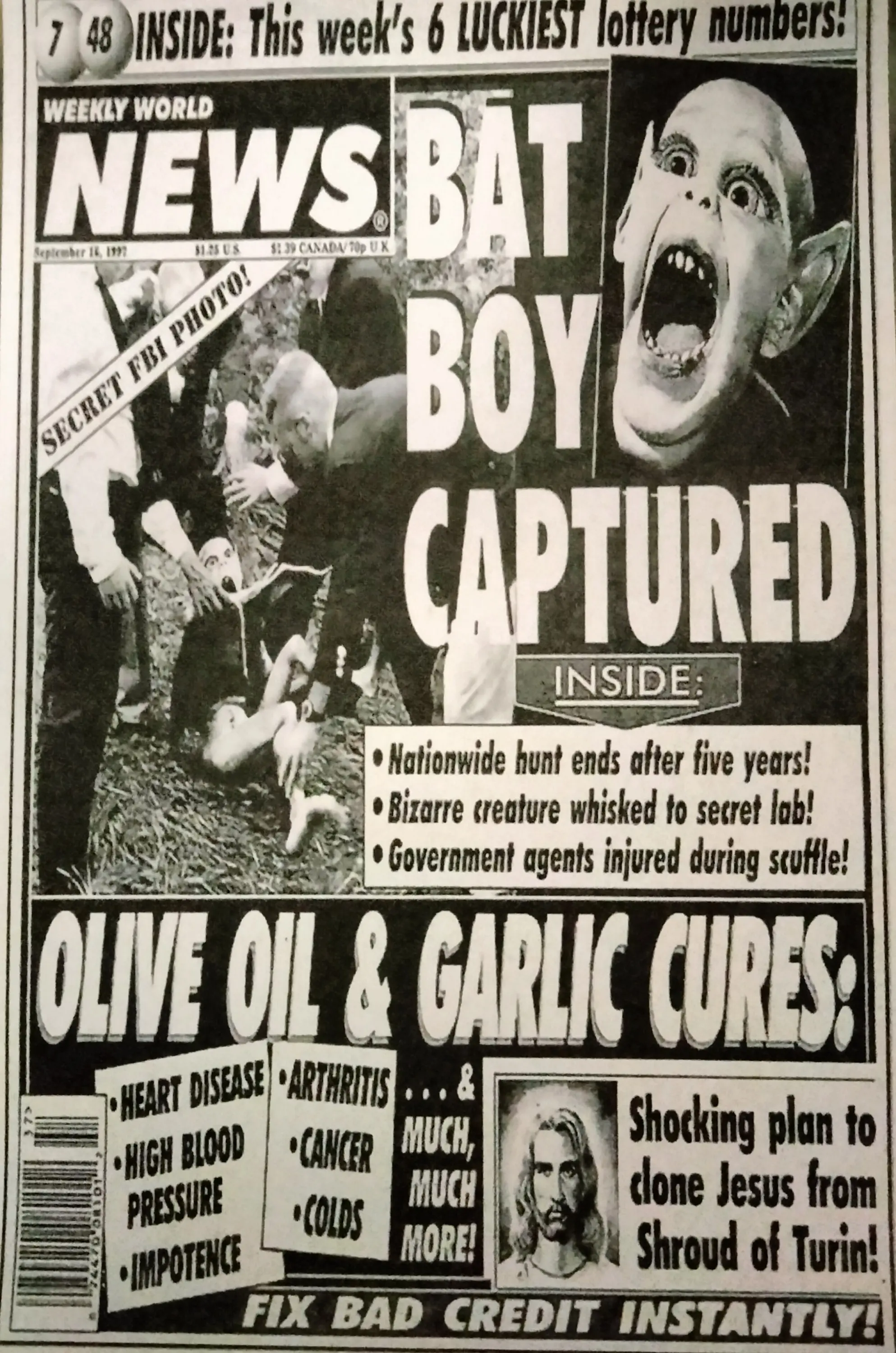 I know. Thats why I want them. I don’t want real news. I never asked her to buy a newspaper. I want to read how Bigfoot was caught bathing in a bird bath in northern Canada. Yes, I was 7, and knew the difference between this and reality. But I love absurd fake shit.