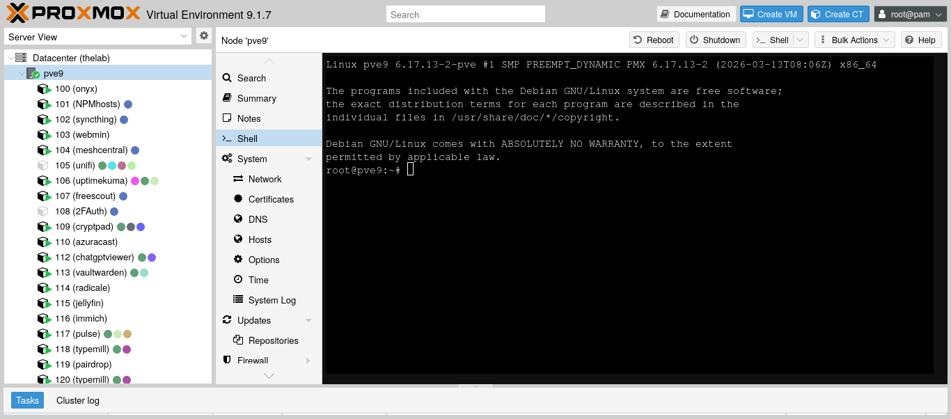Se hai intenzione di ripartire da zero, dai un occhiata a Proxmox. E’ un hypervisor che ti permette di creare LXC (containers) e VM in ambienti separati e indipendenti l’uno dagli altri. Da quando l’ho scoperto… non tornerei mai più su OS tradizionali per il self hosting. Quello che vedi è il pannello di controllo e sulla sinistra ci sono tutte le LXC che ospito, alcune pubbliche alcune in locale. Ma la lista è molto più lunga 😆